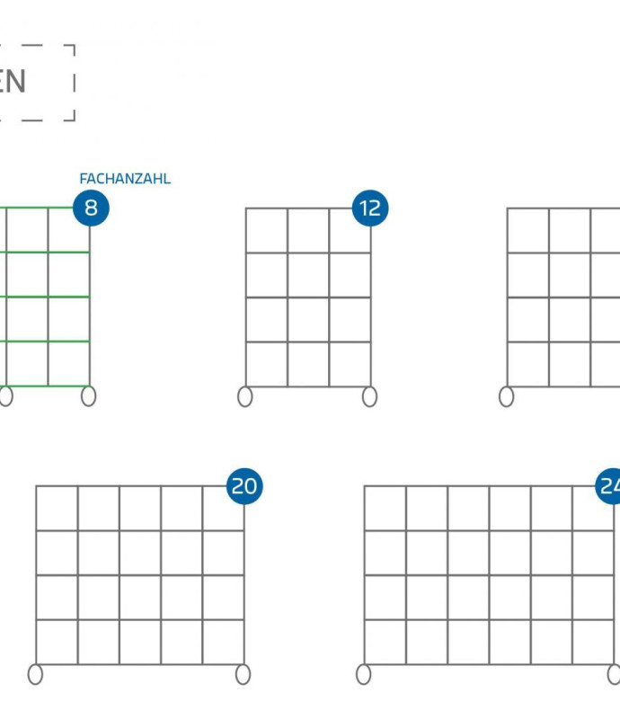 | 5 Bottoms | 457 mm | 8 Compartments | 12 Compartments | 16 Compartments | 20 Compartments | 24 Compartments |